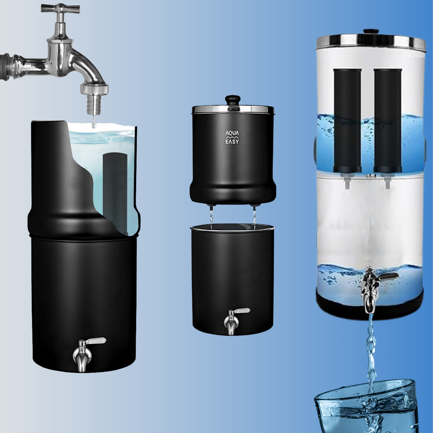 Discover how the Aqua Easy Gravity System delivers clean and fresh water, without using electricity or plumbing. Help reduce plastic waste, safe money on bottled water and drink healthier water with Aqua Easy!